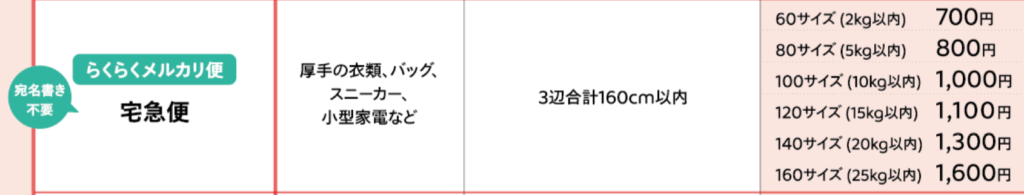 らくらくメルカリ便の60サイズは送料が700円になっています。